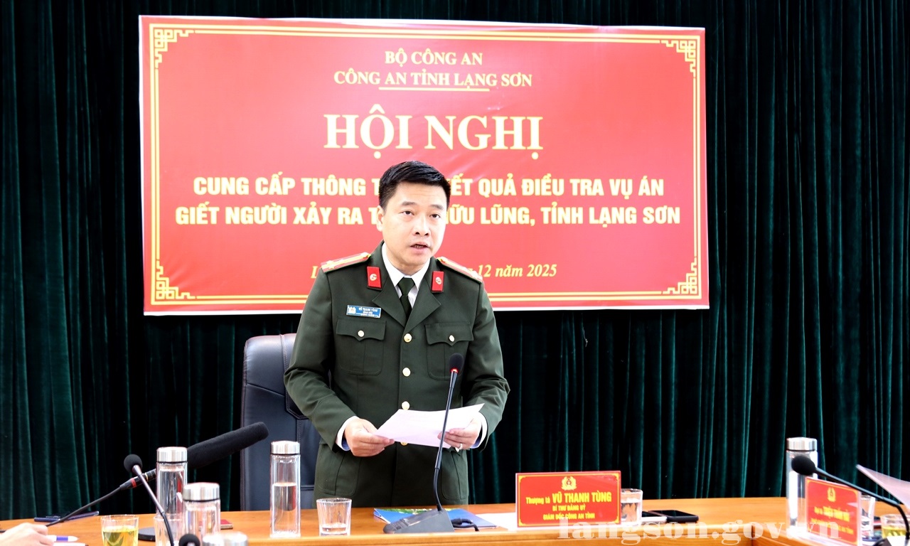 Chiều 03/12/2025, Công an tỉnh Lạng Sơn tổ chức hội nghị cung cấp thông tin liên quan Vụ án “Giết người” xảy ra trên địa bàn xã Hữu Lũng, tỉnh Lạng Sơn. Tham dự có lãnh đạo một số sở, ngành của tỉnh; các cơ quan báo chí Trung ương và địa phương trên địa bàn tỉnh; Cổng Thông tin điện tử tỉnh.