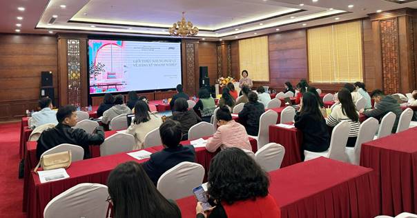Ảnh: Bà Nguyễn Hồng Vân – Trưởng phòng Quản lý đăng ký kinh doanh- Cục phát triển doanh nghiệp tư nhân và kinh tế tập thể, Bộ Tài chính trình bày tại Hội nghị
