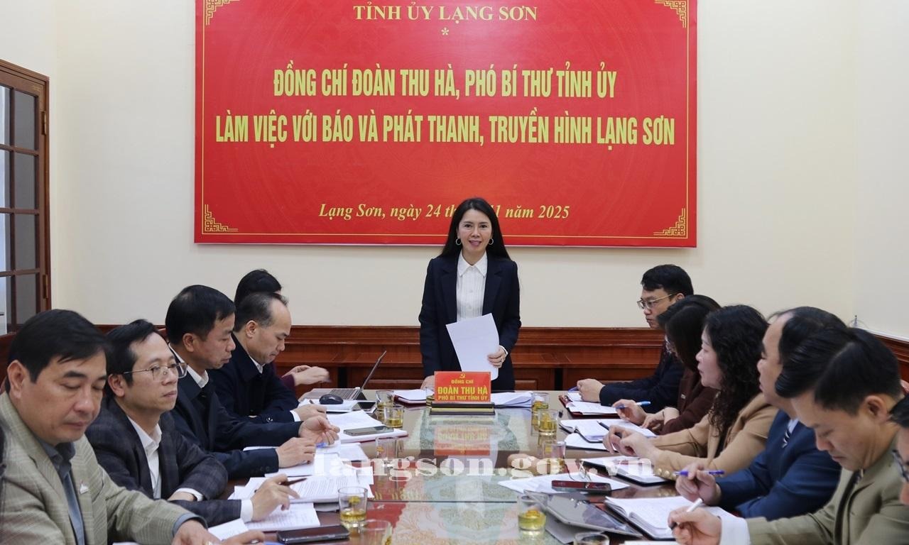 Đồng chí Đoàn Thu Hà, Phó Bí thư Tỉnh ủy làm việc với Báo và Phát thanh, Truyền hình Lạng Sơn