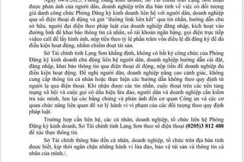 Copyright Ⓒ Cổng thông tin điện tử tỉnh Lạng Sơn. All Rights Reserved