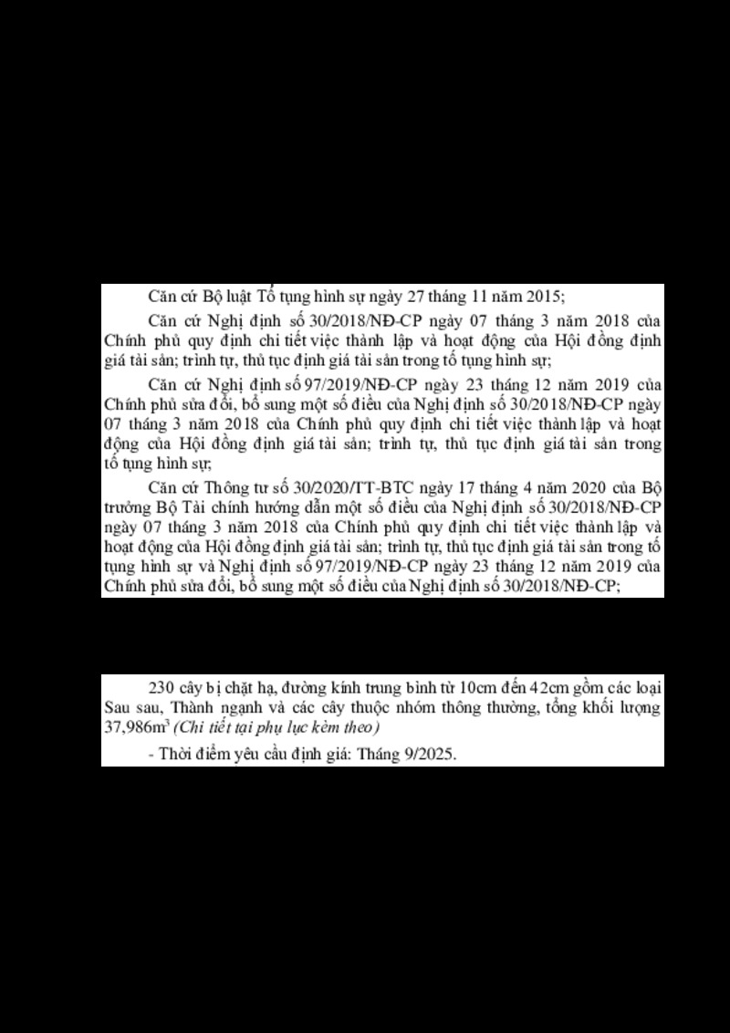 Tiêu đề văn bản | Thông báo Về việc lựa chọn các tổ chức, đơn vị thẩm định giá xác định giá trị các tài sản trong vụ Huỷ hoại rừng | ||