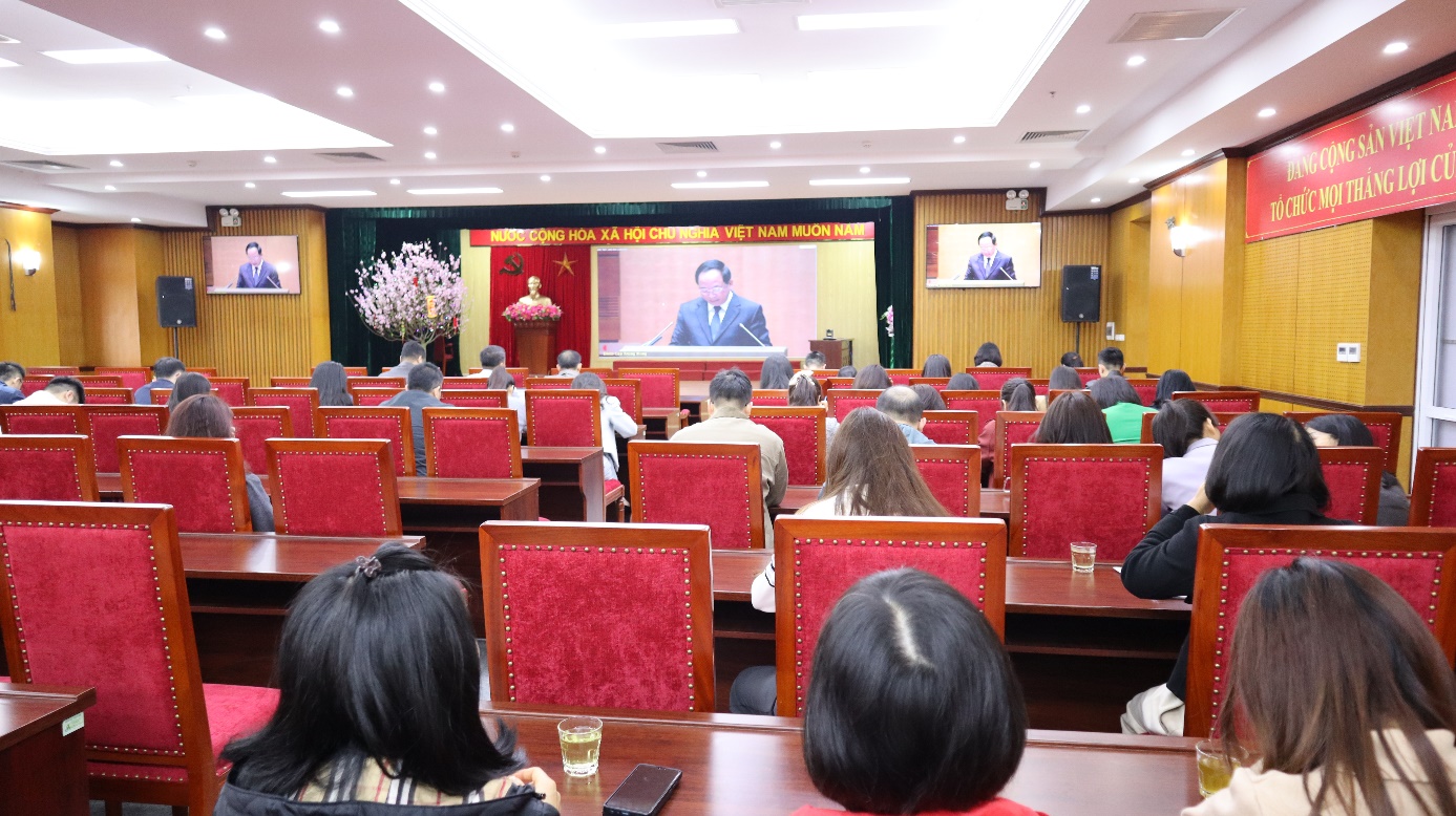 Căn cứ Công văn số 856-CV/ĐU ngày 23/02/2026 của Đảng ủy UBND tỉnh, Đảng ủy Sở Tài chính đã ban hành Công văn số 84-CV/ĐU ngày 24/02/2026, hướng dẫn các chi bộ trực thuộc tổ chức tham gia hội nghị dưới hình thức kết nối trực tuyến từ điểm cầu cấp tỉnh đến cơ sở. Hội nghị được tổ chức tại Hội trường tầng 8, Sở Tài chính, với 70 đại biểu là đảng viên và quần chúng thuộc Đảng bộ Sở Tài chính (bao gồm các đồng chí dự tại điểm cầu cấp tỉnh theo Công văn số 288-CV/TU ngày 23/02/2026 của Ban Thường vụ Tỉnh ủy).