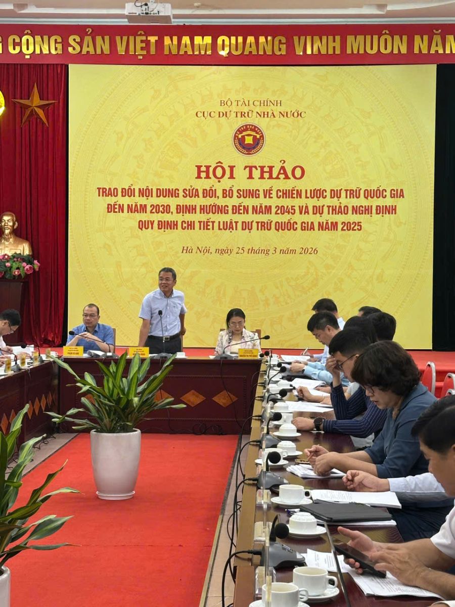 (Một số hình ảnh tại Chương trình hội thảo trao đổi nội dung sửa đổi, bổ sung Chiến lược phát triển dự trữ quốc gia đến năm 2030, định hướng đến năm 2045 và Dự thảo Nghị định quy định chi tiết thi hành Luật Dự trữ quốc gia năm 2025)