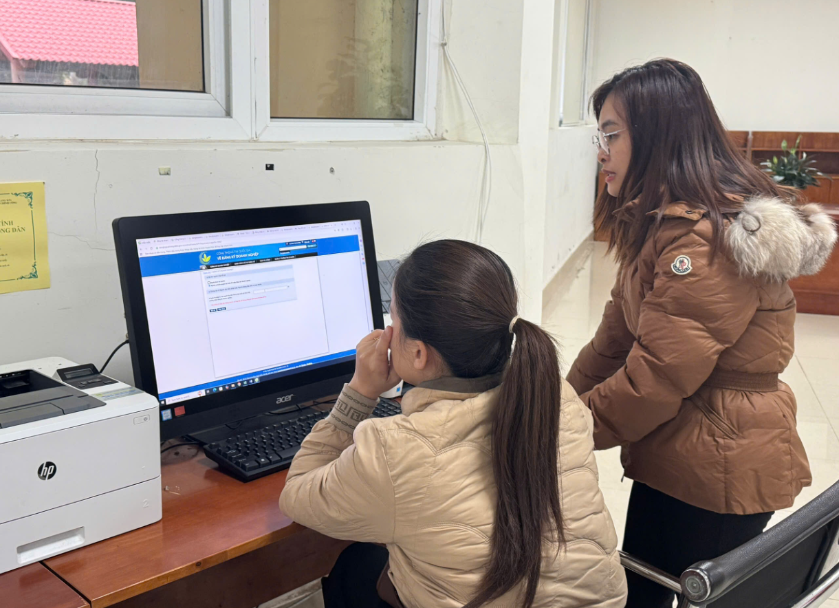 Hình ảnh: Công chức Sở Tài chính hướng dẫn doanh nghiệp nộp hồ sơ trực tuyến tại Trung tâm phục vụ hành chính công tỉnh Lạng Sơn.