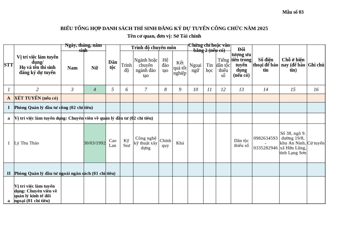 | Tiêu đề văn bản | Thông báo danh sách thí sinh đăng ký dự tuyển công chức Sở Tài chính năm 2015 (đến ngày 6.12.2025) | ||